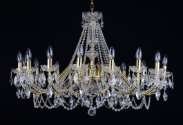 15-arm gold shiny crystal chandelier made of manually moulded brass parts