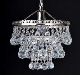 The Strass crystal chandelier decorated with cut crystal balls. The polished brass parts with silver finish. 3 candle bulbs.