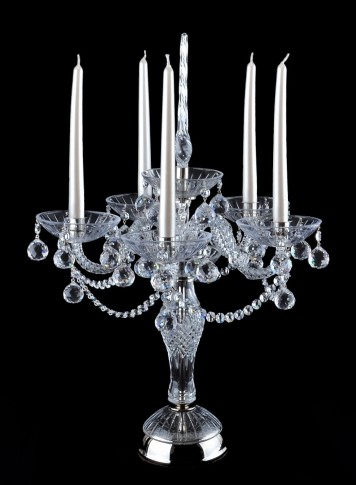 The silver candlestick with 5 glass arms decorated with crystal balls and the design glass spike "icicle"
