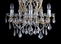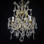 A smaller Theresian chandelier with five flames decorated with cut crystal trimmings. All glass parts of the luminaire are made of hand-blown glass.