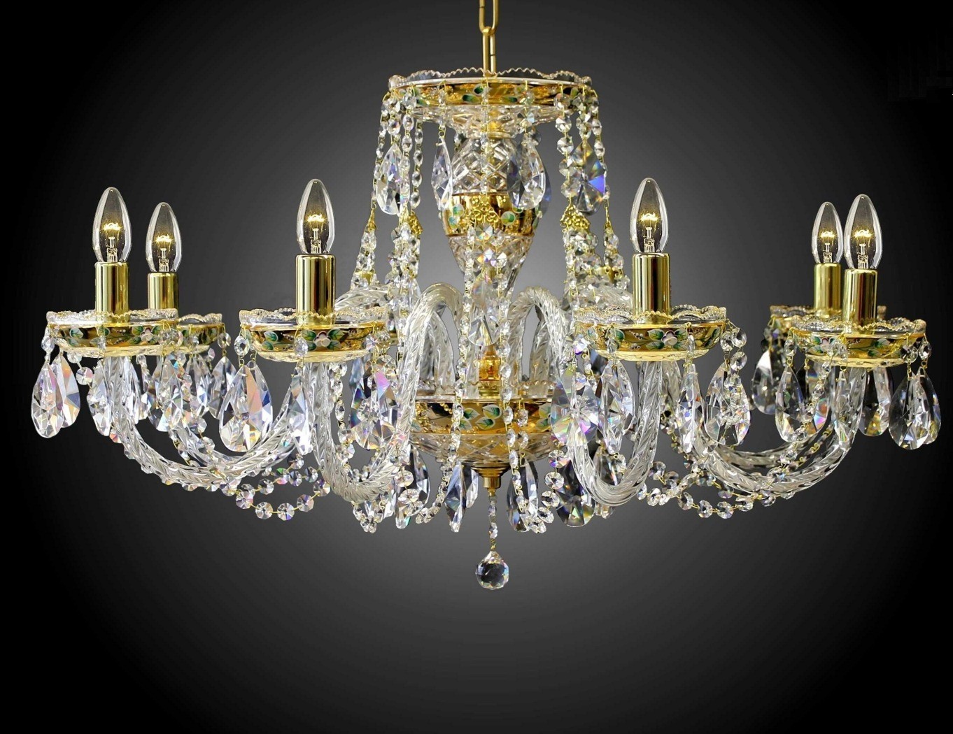 6-Arms Crystal chandelier high enamel on a golden background II.