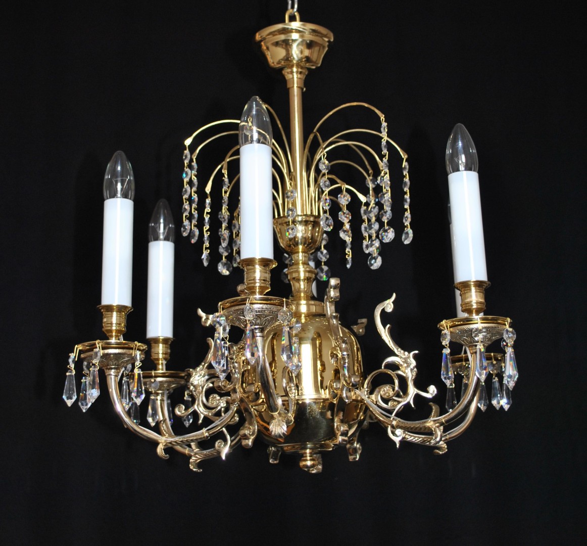 Crystal brass chandeliers & wall lights for a hunting lodge