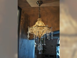 Luxurious Strass chandeliers in Oriental style made of hand blown glass, cut glass pearls.