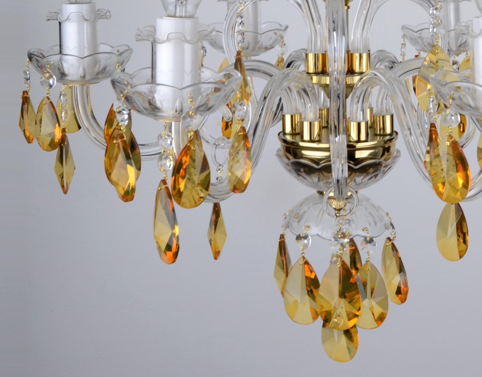 6-arm crystal chandelier with cut crystal yellow almonds - Gold Amber